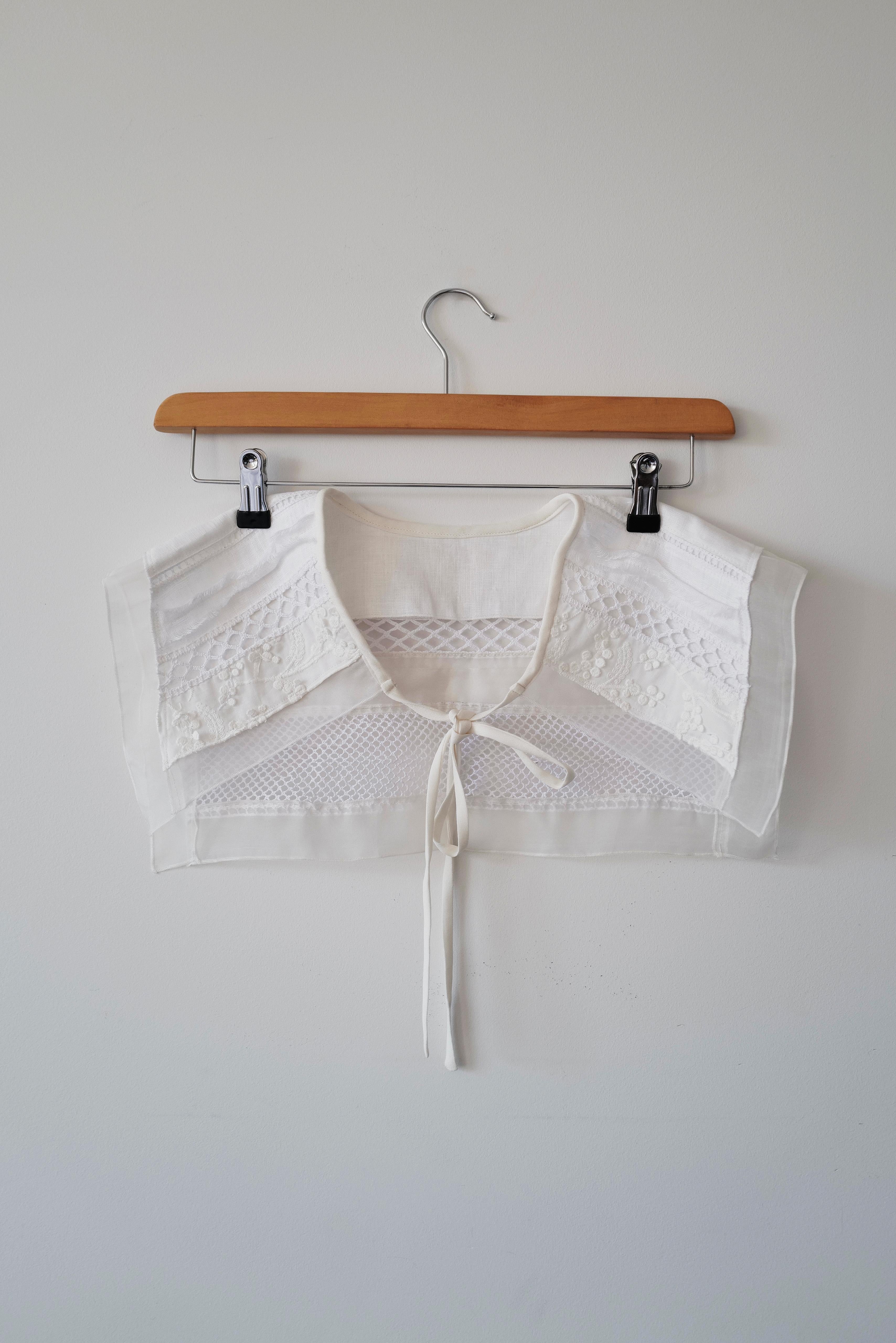 At the core of the collection is Anna Led’s continued exploration of patchwork. Fabrics, ribbons, lace and leather are reconstructed into collars, peplum aprons and complete silhouettes.