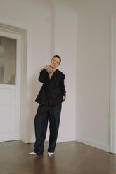 Experience the luxury of our Tailored Black Blazer complete with a soft atlas cupra lining and a flawless cut. This versatile piece can be effortlessly styled with pants for a coordinated look, denim for a casual vibe, or a dress for a chic ensemble. In the photo it s decorated with vintage brooches.