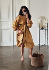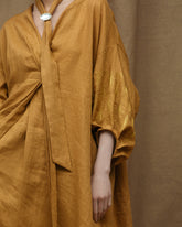 Expertly crafted from soft lightweight linen, this mango colour oversized dress is adorned with stunning art-deco inspired embroidery. The centre cut adds a subtle touch of allure, while the smooth fabric ensures a comfortable and elegant fit. Perfect for any occasion, this dress exudes effortless style and sophistication.