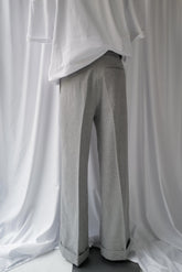 Trousers in a masculine cut with front pleats, made from very soft wool fleece — perfect for everyday wear.