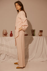 Cupro Pink  Blouse With Open Back and Collar-Scarf SS26