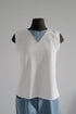 Perfect shape of our tank top TRIANGLE makes your look stylish. Crafted from organic cotton, this relaxed silhouette features a striking denim triangle detail on the front and raw-edge finishes at the neckline and armholes for an on-trend, contemporary aesthetic.