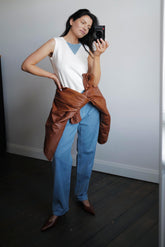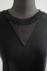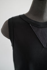 Perfect shape of our  tank top TRIANGLE makes your look stylish. Crafted from organic cotton, this relaxed silhouette features a striking denim triangle detail on the front and raw-edge finishes at the neckline and armholes for an on-trend, contemporary aesthetic.